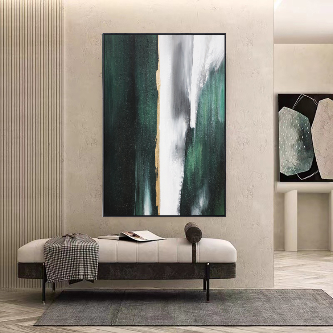 „Hermes Way“ ist ein modernes abstraktes Gemälde, das durch seine reiche Palette aus Smaragdgrün, Gold und Elfenbein Eleganz und Dynamik ausstrahlt. Inspiriert von den Themen Bewegung, Transformation und Kommunikation fängt dieses Kunstwerk die Essenz von Fluidität und Anmut ein. Betrachten Sie Wachstum und Erneuerung, die sich nahtlos in die kräftigen smaragdgrünen Striche einfügen, die Stärke und Mysterium vermitteln, alles vor einem makellosen elfenbeinfarbenen Hintergrund der Reinheit und einem goldenen Pfad der Klarheit. „Hermes Way“ lädt den Betrachter ein, sein harmonisches Zusammenspiel von Farben und Texturen zu erkunden und weckt ein Gefühl von Reise und Entdeckung. Dieses fesselnde Stück ist ein Beweis für die Kraft der Kunst, jeden Raum zu verwandeln und aufzuwerten.