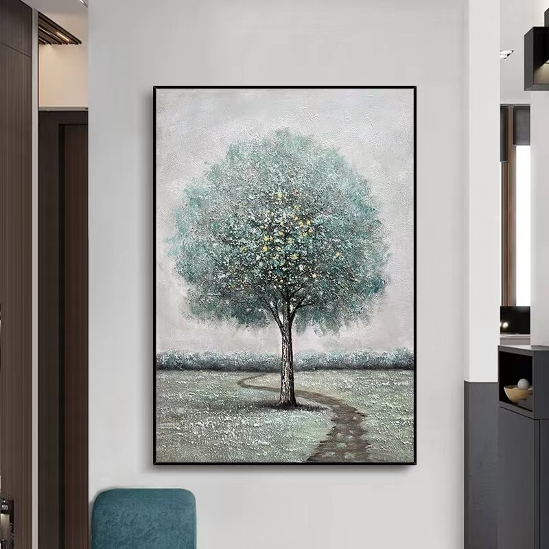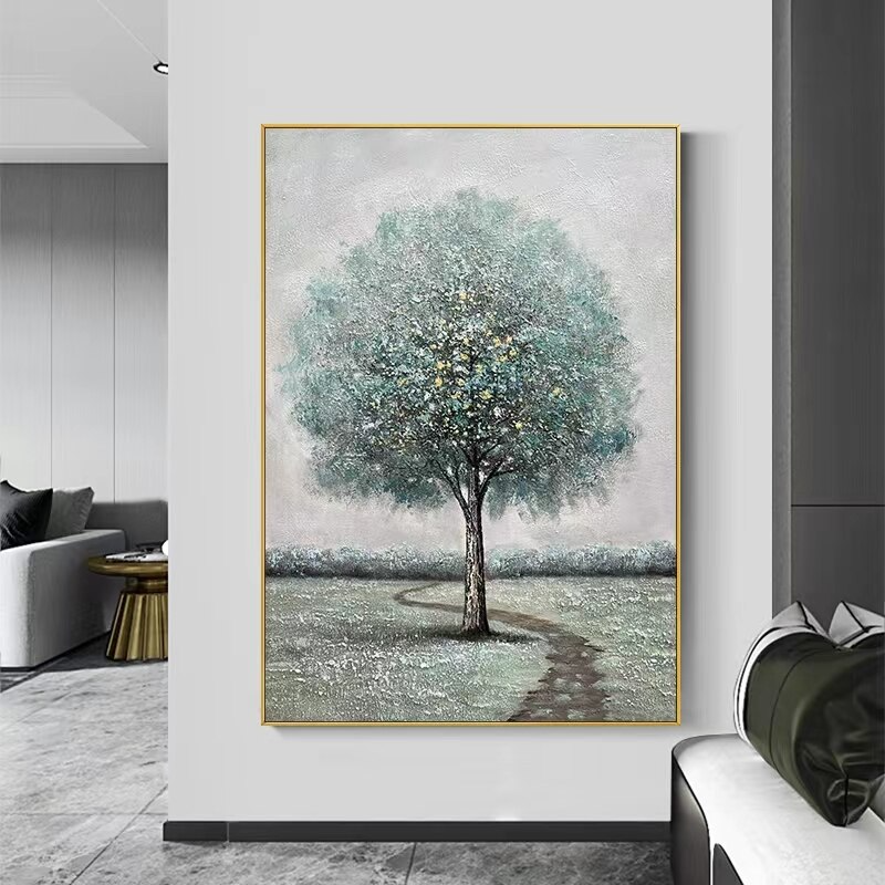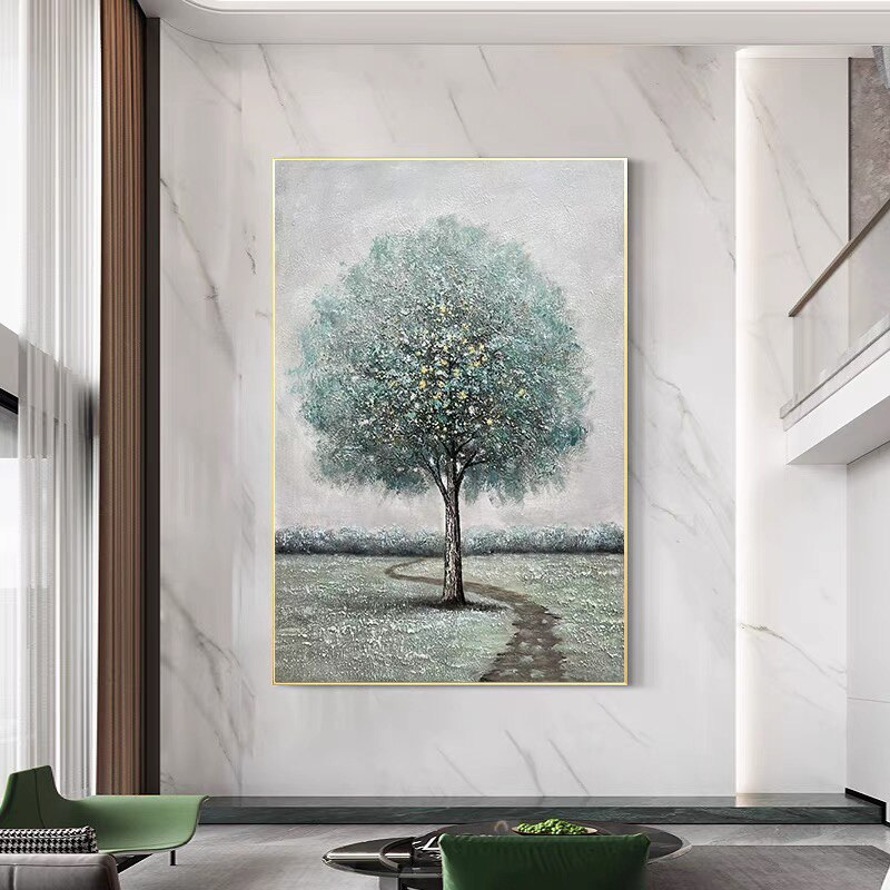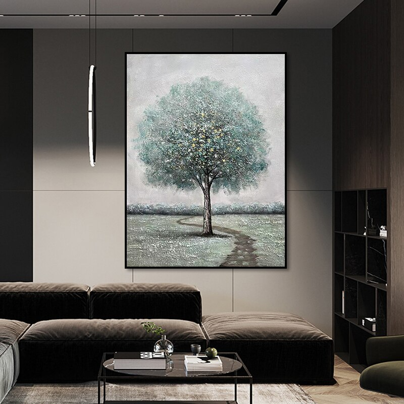 Wenn wir dieses Ölgemälde betrachten, empfinden wir Ehrfurcht und Staunen über die Schönheit des einsamen Baumes. Seine unerschütterliche Stärke und Widerstandskraft inspirieren uns, unsere eigene Individualität anzunehmen und auf unsere Fähigkeiten zu vertrauen. Der Pfad im Gemälde stellt die ungeschlagenen Wege im Leben dar und erinnert uns an die endlosen Möglichkeiten, die uns erwarten, wenn wir den Mut haben, uns von der Masse abzuheben und unseren eigenen, einzigartigen Weg zu beschreiten.
