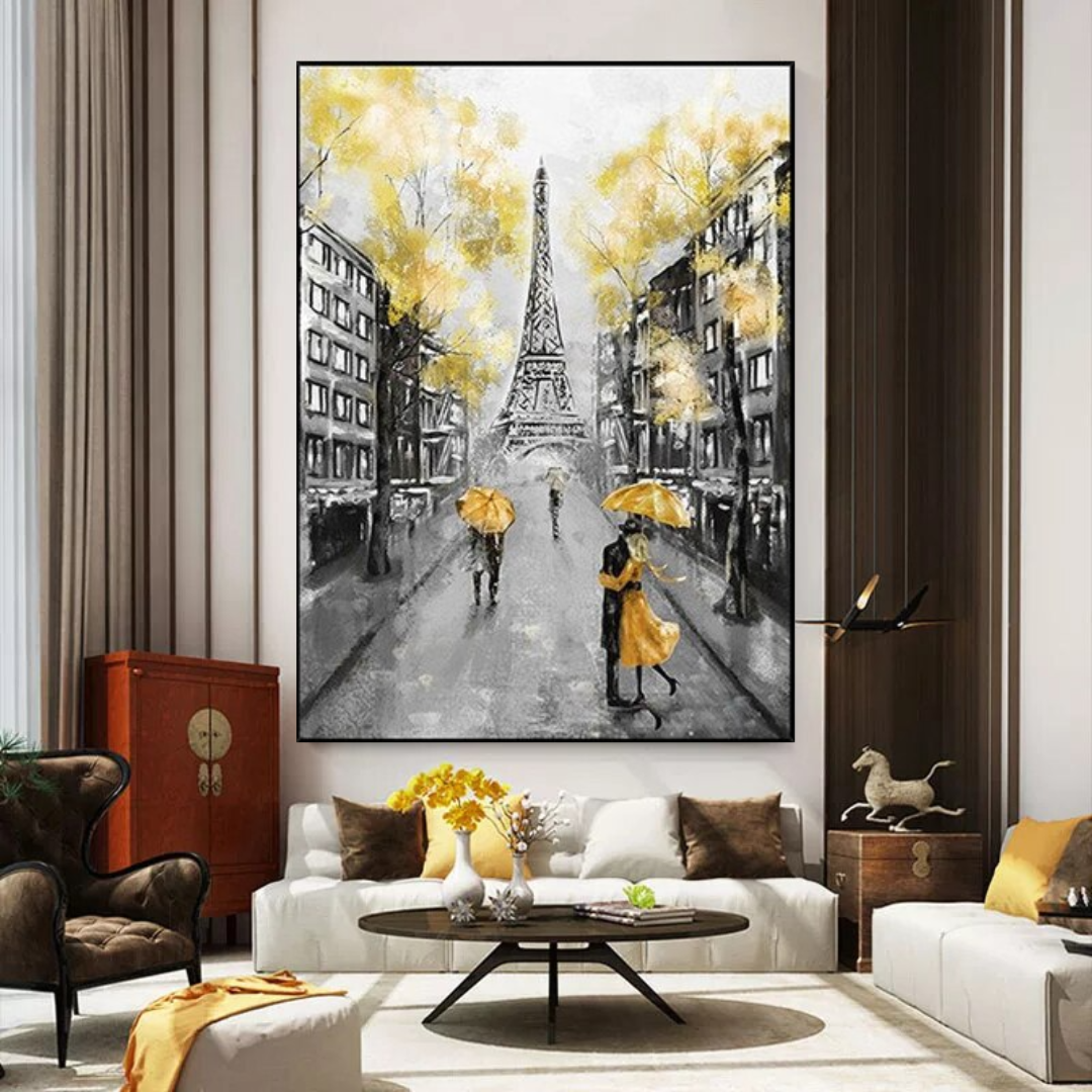 Dieses wunderschöne Ölgemälde zeigt den ikonischen Eiffelturm, der sich im Zentrum von Paris erhebt, ein Symbol für Stärke, Freiheit und Patriotismus. Inspiriert von der Belle Époque von Paris und eine Darstellung der Romantik, die in den Herzen der Menschen auf der ganzen Welt beliebt ist. Eine Explosion der Freude in den leuchtenden Gelbtönen, die das Gemälde zum Leben erwecken und das ursprüngliche Gelb des Turms widerspiegeln, als er erbaut wurde. Das Gemälde ist mehr als nur eine Erinnerung an eines der größten Weltwunder, sondern eine wahre Darstellung von Schönheit, Stärke, Freude und Freiheit.