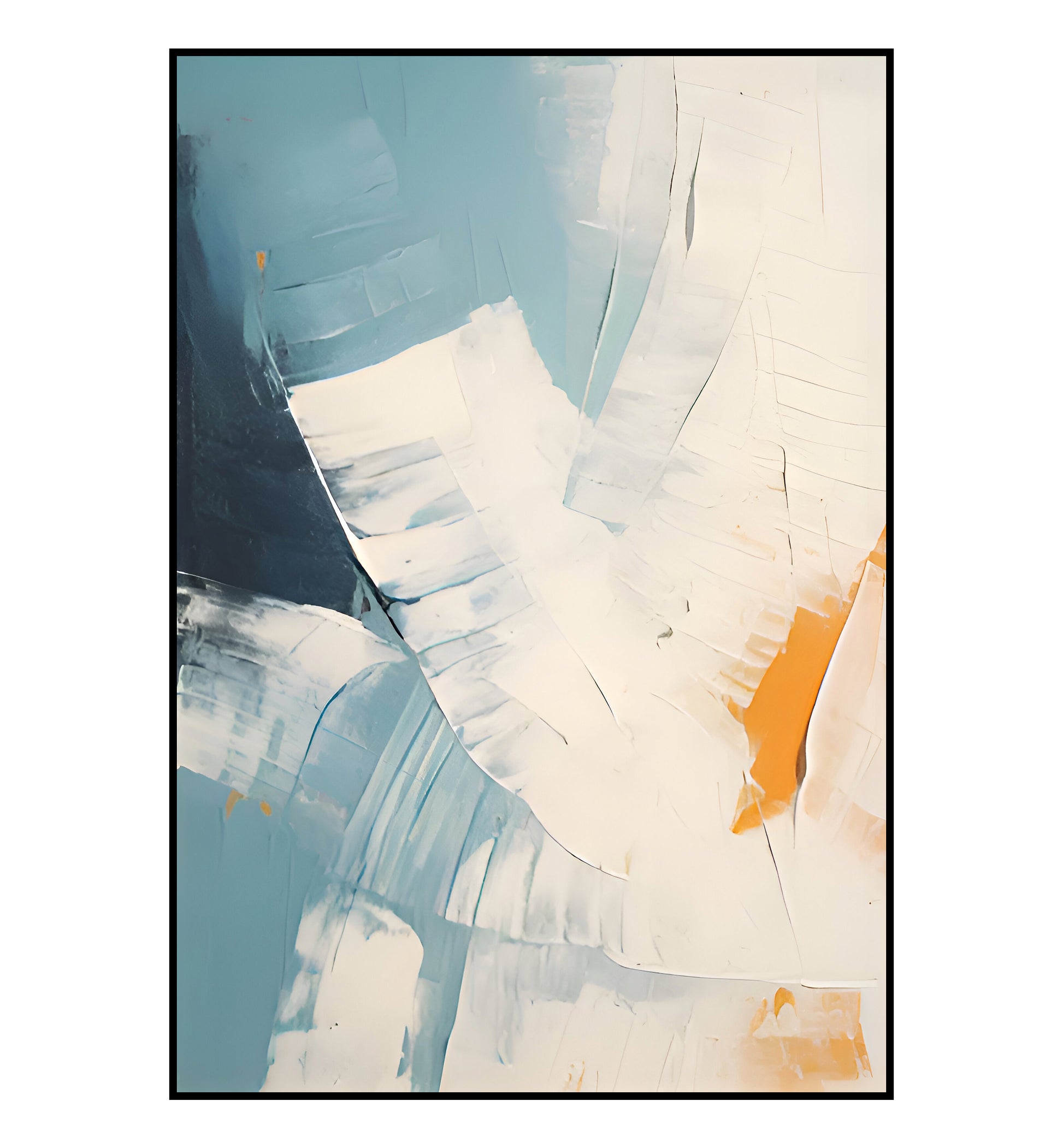 Luminous Interval unfolds with sweeping textures of teal and white, punctuated by restrained bursts of ochre. Its composition feels expansive, as though light itself has been caught in motion across the canvas. Where Golden Interlude is a moment of warmth within depth, Luminous Interval is the pause that follows, open, spacious, and radiant in its restraint.