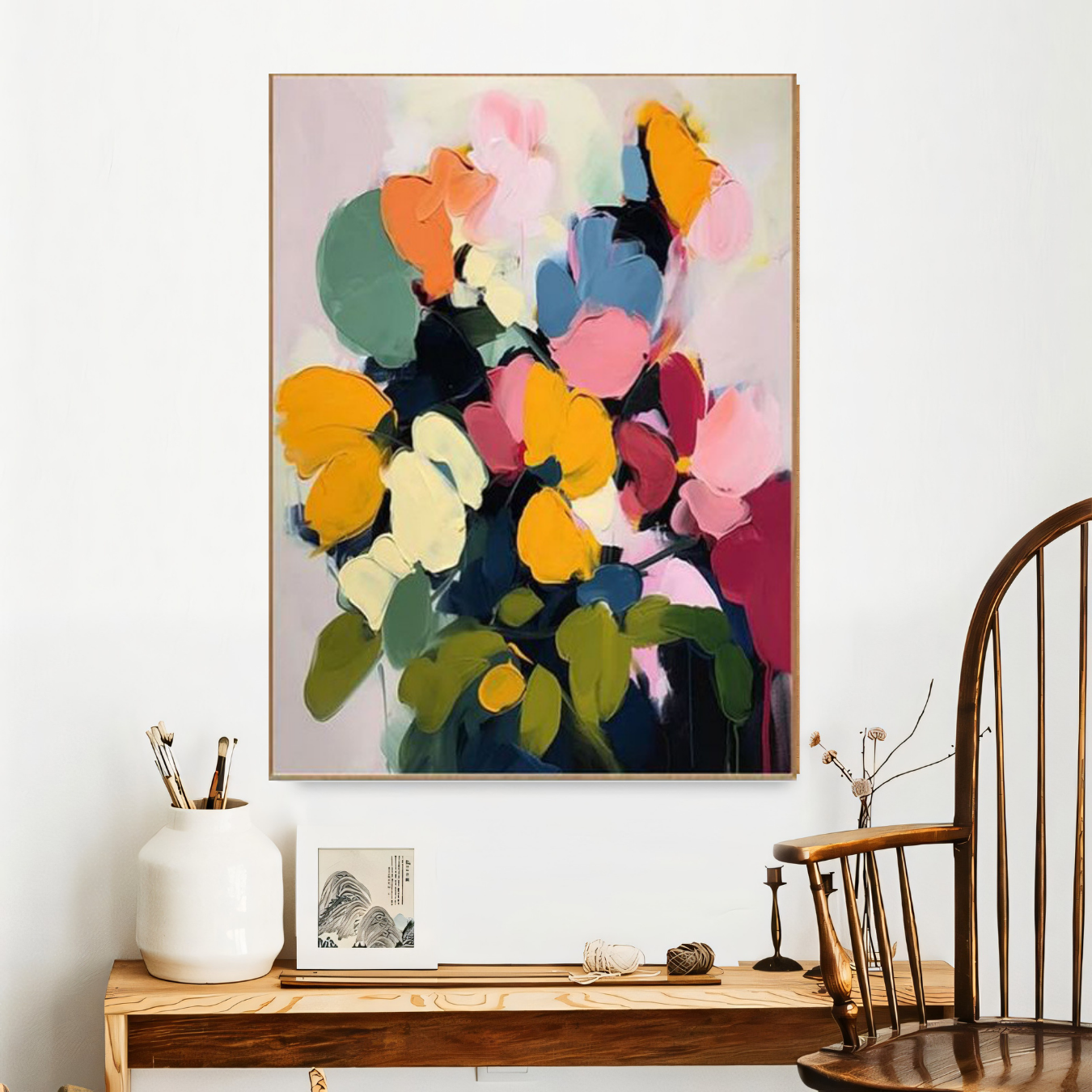 "The Offering" captures the timeless beauty of a vibrant bouquet, radiating joy and intention. Each textured bloom, bursting with color, symbolizes love, gratitude, the celebration of new beginnings, and the deep connections we share. The dynamic composition celebrates the act of giving as a reflection of care and the beauty of offering something from the heart.